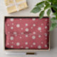 A pretty red tissue paper with irregular pink polka dots . Perfect to add inside a gift bag .