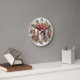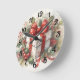 Pretty Red White Polka Dot Coquette Bow and Holly Round Clock