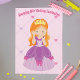 These adorable pink princess happy birthday card features a drawing of a pretty redhead little girl wearing a beautiful pink ball gown. Personalise this cute children's birthday card with your child's name between the fun heart pattern.