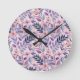 Pretty Retro Lilac Floral Illustration Round Clock