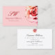 Pretty Rose on Plain Light Pink with Initials Business Card