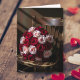 A pretty Valentine's Day card with a beautiful bouquet of pink and red roses laying on an old rustic wood chair. Inside is a sentimental and romantic poem about love that endures.