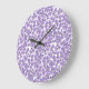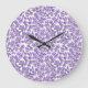 Pretty Round Wall Clock, Violets and Check Gingham Large Clock