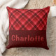 Pretty Ruby Red Plaid Monogram Big Throw Pillow