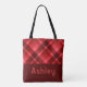 Pretty Ruby Red Plaid Monogram Tote Bag