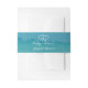 Pretty sea green watercolor destination wedding Invitation Belly Band. Tropical design template with turquoise blue and sea green colours. Add your own personalised name of bride of groom. Double heart drawing logo.