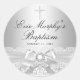 Silver Baptism Sticker. White damask & pretty diamond bow. Customise with your own details. Please note all flat images!