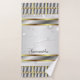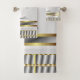 Unique blend of gold, silver and grey bath towel set. An intricate design for your bathroom decor. Personalise the name and buy now.