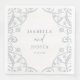 These wedding napkins are the perfect addition to your events and will make your events feel royal, romantic and elegant featuring a soft pretty dusty blue silver glitter, floral lace frame design with leaves. Perfect for any season.