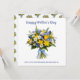 A beautiful greetings card for Mother's Day, illustrated with a pretty bouquet of Spring flowers tied with a blue ribbon. The greeting 'Happy Mother's Day' appears at the top in elegant script typography. Personalise with your name(s) at the bottom of the card, for a stylish individual touch. The back of the card is patterned with small bouquets. With elegant botanical charm, this card is ideal for lovers of flowers and nature.