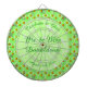 There is a pale green circle with white marbled patterns on it which contains customisable text so you can include all the important details.