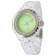 This awesome watch is designed for the bride. The design features a pattern of pretty pale pink apple blossom flowers. They are 2 different shades of pink and all have a yellow middle. They are ideal for a Spring Wedding and are mixed amongst apples. Each apple is green with a red blush on one side and a small brown stalk.