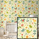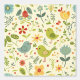 Pretty Springtime Flowers Birds Green on Yellow Wallpaper