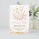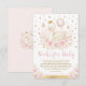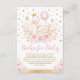 This feminine design features an illustration of a pretty swan princess surrounded by gorgeous watercolor blush pink roses and gold glitter confetti