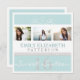 Three photos of your daughter are accented with pretty swirls and a faux ribbon in this graduation design in soft aqua teal with white and pale grey accents.