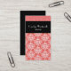 Elegant ladies business card, done in a tangerine orange and white damask pattern, with a black bold stripe, across the top, and solid black on the back. White text is ready to personalise with your information. A lovely stand out card great for any kind of occupation or business.