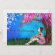Hand drawn pretty lady sitting under a magical colourful whimsical tree.