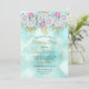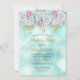 Pretty Teal Blue Gold Floral Pink Birthday Party Invitation