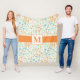 Pretty Teal Blue Orange Pink Floral Pattern Fleece Blanket