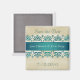 Elegant save the date magnet in a beige satin look, with pretty teal damask design. Customise with your information as a lovely way to announce your upcoming marriage.