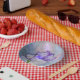 This paper bowl features a beautiful purple Iris against a textured background. Great for birthdays, picnics,etc