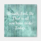 Pretty turquoise rustic wood affect magnet with a motivational quote saying, Breath, Feel, Be, that is all you have to do today.