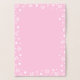 Birthday card in white with a gold foil unicorn surrounded by stars and hearts, with a bubblegum pink inside where you can add a birthday greeting by hand inside a frame of white stars, hearts, and dots.