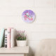 Pretty Unicorn Pink Purple Sparkle Girl's Room Round Clock