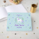 This aqua baby shower guest book features a pretty unicorn design with faux purple glitter. Personalise it with a name. This guest book is part of a collection which includes a full range of matching items. Please visit the collection pages in our store to see the full range of products that you can personalise for your baby shower needs.
