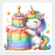 Unicorn holding a colorful cake. Wonderful Rainbow Colors,