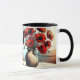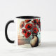 Vase of flowers. Red poppies in a white vase sitting on a table. Pretty comic book style cartoon Poppies.