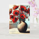 Thinking of you card. Vase of flowers. Red poppies in a white vase sitting on a table. Pretty comic book style cartoon Poppies.