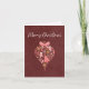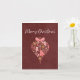 Pretty Vintage Burgundy/Pink Bows and Wine Card. A beautiful design of an ornament with cheers, trees and bows all on a burgundy background. The inside has space for your own personal text and a greeting and final space for your family names.