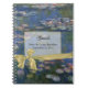 Lovely spiral notebook with Claude Monet's painting Water Lilies as the background. Graphics of a gold tone edged text field and lovely graphics of a golden yellow satin looking ribbon finishes off the colourful guest book. Black text is ready to personalise for your wedding. Matching wedding products available, see links below.