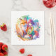 Pretty Watercolor Anime Girl and Fox Birthday Napkin