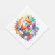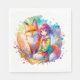 Pretty watercolor ai art on birthday paper napkins for a little girl. A fox with an anime girl in pink, green, blue and orange.