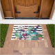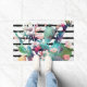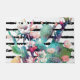 Pretty Watercolor Cactus Floral Black Stripes Doormat