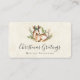 Business cards with a pretty deer laying down surrounded by leafy flora. Rustic Boho style design.