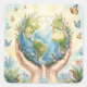 Pretty Watercolor Earth, Butterflies and Birds Square Sticker