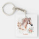 Pretty Watercolor Floral Boho Horse Keychain