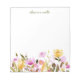 Pretty notepad with watercolor flowers in pink and mustard yellow, personalised with your name.