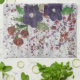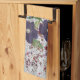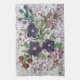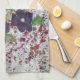Tea towel with a pretty watercolor floral design with deep purple, and greens and a touch of blue