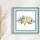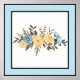 Watercolor flowers with a black outline within a light blue border.