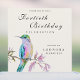 A beautiful modern elegant adult birthday invitation with a hand-painted watercolor hummingbird on a flowering branch. Customisable for any birthday milestone