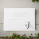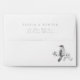 A hand-painted watercolor black and white hummingbird on an elegant wedding invitation envelope