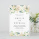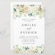 Invite family and friends to your wedding with this elegant floral wedding invitation. It features watercolor illustrations of white and ivory roses and peonies, greenery and faux gold foil accents with matching floral pattern. This watercolor peony wedding invitation is perfect for spring and winter weddings.