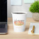 Pretty, modern, minimalist and trendy wedding paper cup features three colour watercolor brush stroke graphic with grey and coral coloured text blocks in modern fonts