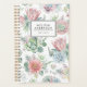 Feminine custom planner featuring watercolor illustrations of of pastel pink, blue and green succulents and flowers. Personalise by adding your name or short phrase. This pretty succulent floral planner will be perfect as a personalised gift. Matching items are available.