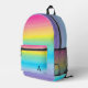 Pretty Watercolor Pink Rainbow Stripes Monogram Printed Backpack