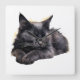 PRETTY WATERCOLOR SLEEPING FLUFFY BLACK CAT